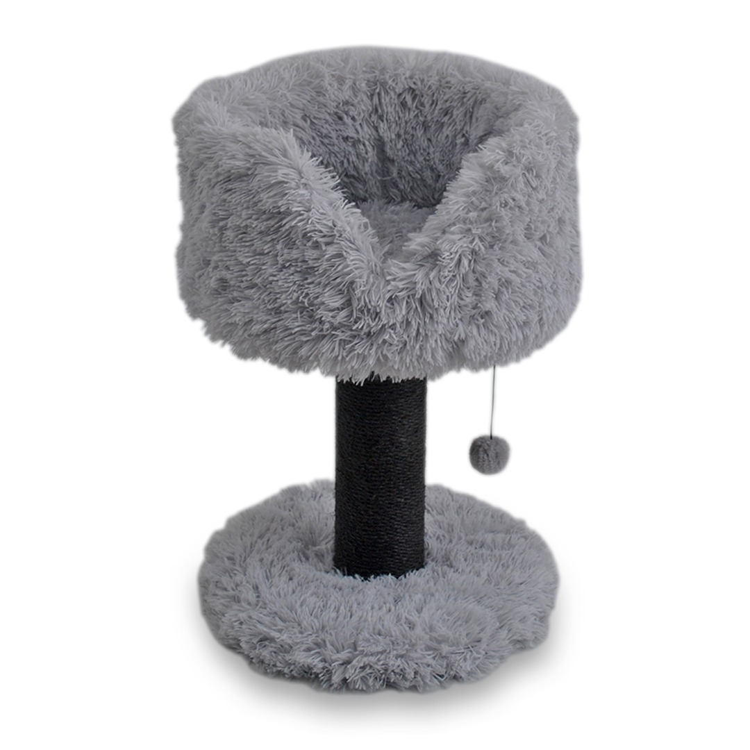 Krabpaal Fanny grijs van duvoplus is een kleine, stabiele krabpaal met een comfortabele ligplatform in langharige pluche, er is dus voldoende ruimte voor je kat om te krabben, op uitkijk te staan en uit te rusten. De krabpaal is afgewerkt met een pluche speelballetje. De paal van 11cm dikte is bekleed met robuuste zwarte sisal om de nagels te scherpen. Katten wrijven ook graag hun feromonen af op een krabpaal om stress te verlagen.